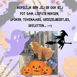 Twist Circusatelier vzw en Schuur van Tuur, organiseren samen Halloween in de Schuur. Een griezelig leuke dag met allerlei leuke activiteiten zoals : griezel disco, kinder Grimme, mega zeepbellen blazen, heksendrankje, zakje snoep, Halloween cupcakes, stro parcour (in Halloween thema), circus, onze dieren ontdekken, etc... Wanneer? Vrijdag 31 oktober Doorlopend tussen 10.00 en 18.00u Dresscode? De kids komen verkleed in halloween outfit naar de Schuur. Prijs? Kids : 18 euro pp Volwassenen : gratis Inschrijven? Via de knop 'nu boeken'. Even doorklikken in maandkalender naar vrijdag 31/10, en je kan één of meerdere kids inschrijven, voor dit griezelig leuke event. Tot binnenkort ;-) Groetjes, Team Halloween